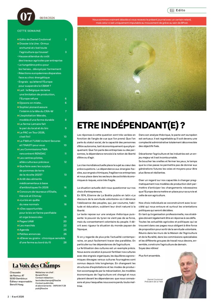 Vous recevrez votre journal La Voix des Champs directement chez vous !